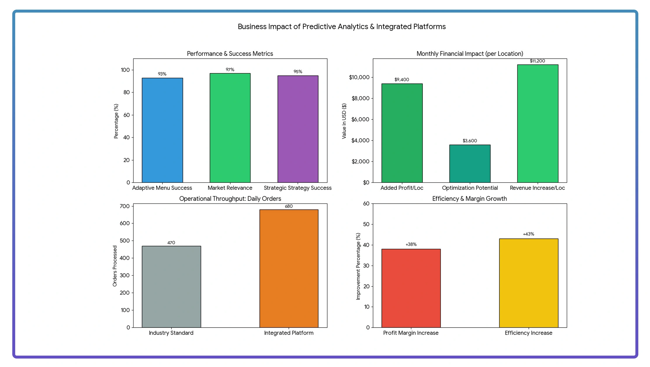 Establishments adopting integrated platforms uncovered $3,600 in monthly optimization potential while maintaining 97% market relevance. Operational efficiency increased 43%, with 680 daily orders processed—significantly above the 470-industry standard. - Strategic Revenue Enhancement