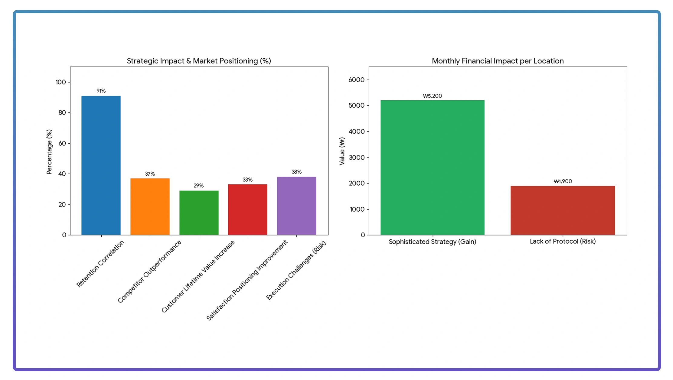Top performers process customer feedback within 3.8 hours, emphasizing the importance of operational agility. Processing delays can cost medium-sized establishments ₩520 daily, while efficient systems enhance satisfaction positioning by 33% and deliver up to ₩67,000 more in annual revenue per outlet.